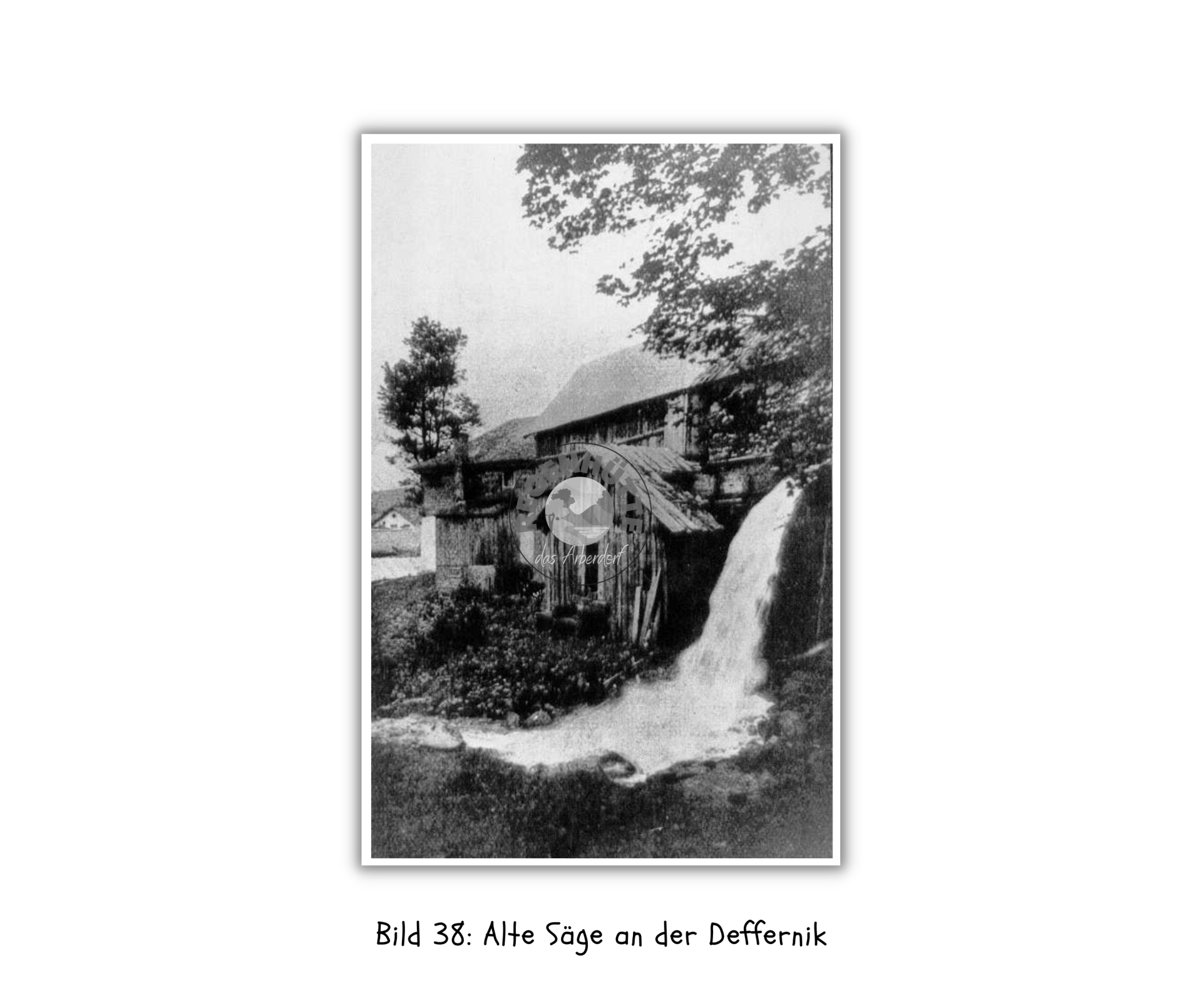 Auch ohne konkretere Unterlagen darüber aufgefunden zu haben, kann man annehmen, daß hier tatsächlich einmal eine mit Wasserkraft (aus der nahegelegenen Deffernik) betriebene Hammerschmiede existierte, die, wie die Abbildung zeigt, ausgesehen haben könnte.